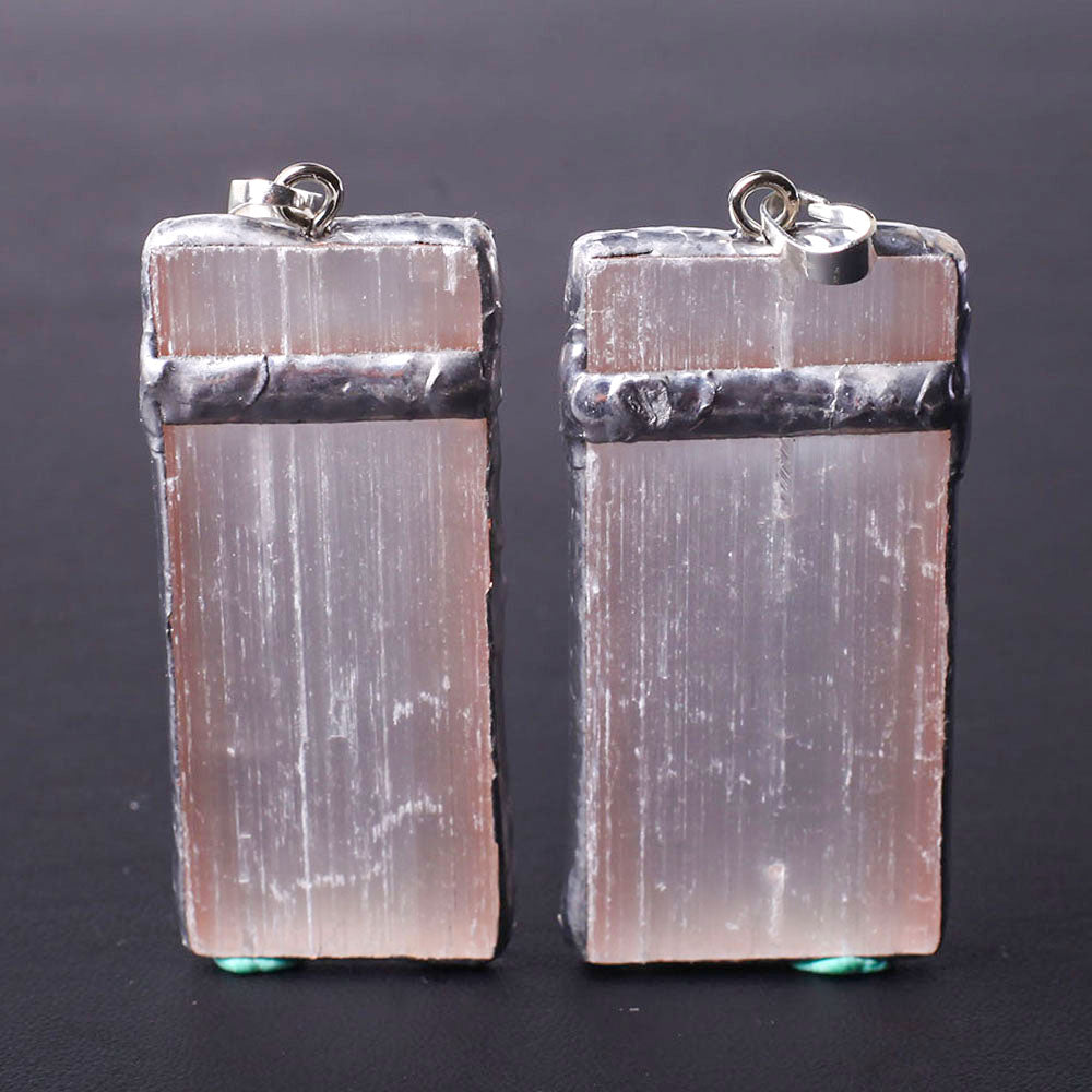 Pink Selenite Square Slice Pendant 2.29x1.04in Healing