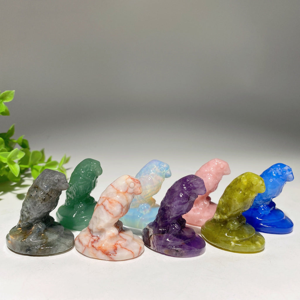 Each mixed crystal parrot carving carries unique energies depending on the stone type. They often symbolize communication, clarity, and joyful expression, enhancing meditation and spiritual connection with animal totems.