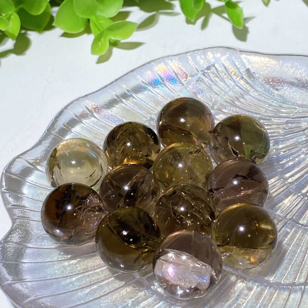 Yes, these spheres are crafted from authentic smoky citrine, polished to a glossy finish that showcases their beautiful color variations.