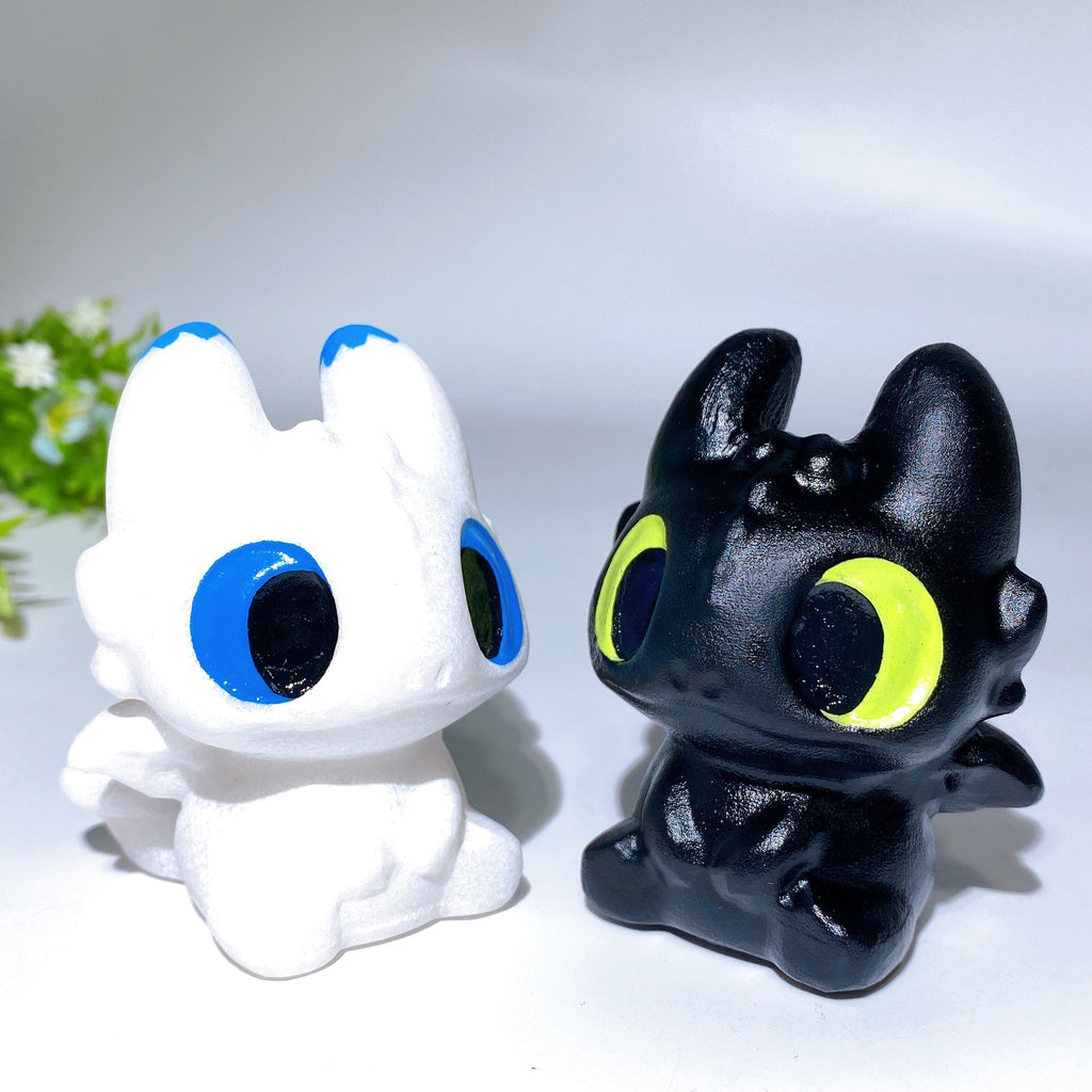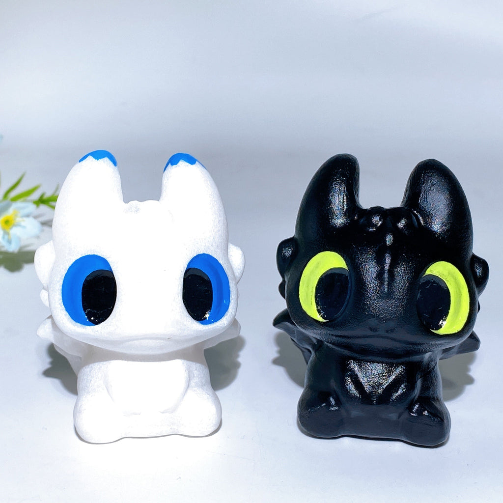 The white jade dragon symbolizes purity, calm, and healing energy, while the black obsidian dragon offers strong protection and grounding. Both stones together enhance spiritual balance and energetic clarity.