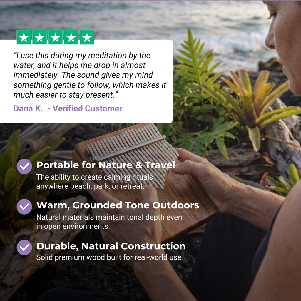 Diese Kalimba ist auf den beruhigenden Ton C gestimmt und eignet sich ideal für Meditations- und Entspannungssitzungen. Ihr ruhiger Klang ergänzt jede Meditationspraxis mit Klangschalen . Ob zum persönlichen Vergnügen oder in Kombination mit anderen Instrumenten – ihre melodischen Töne unterstützen den musikalischen Ausdruck und sind in Traditionen mit Klangpraktiken beliebt.