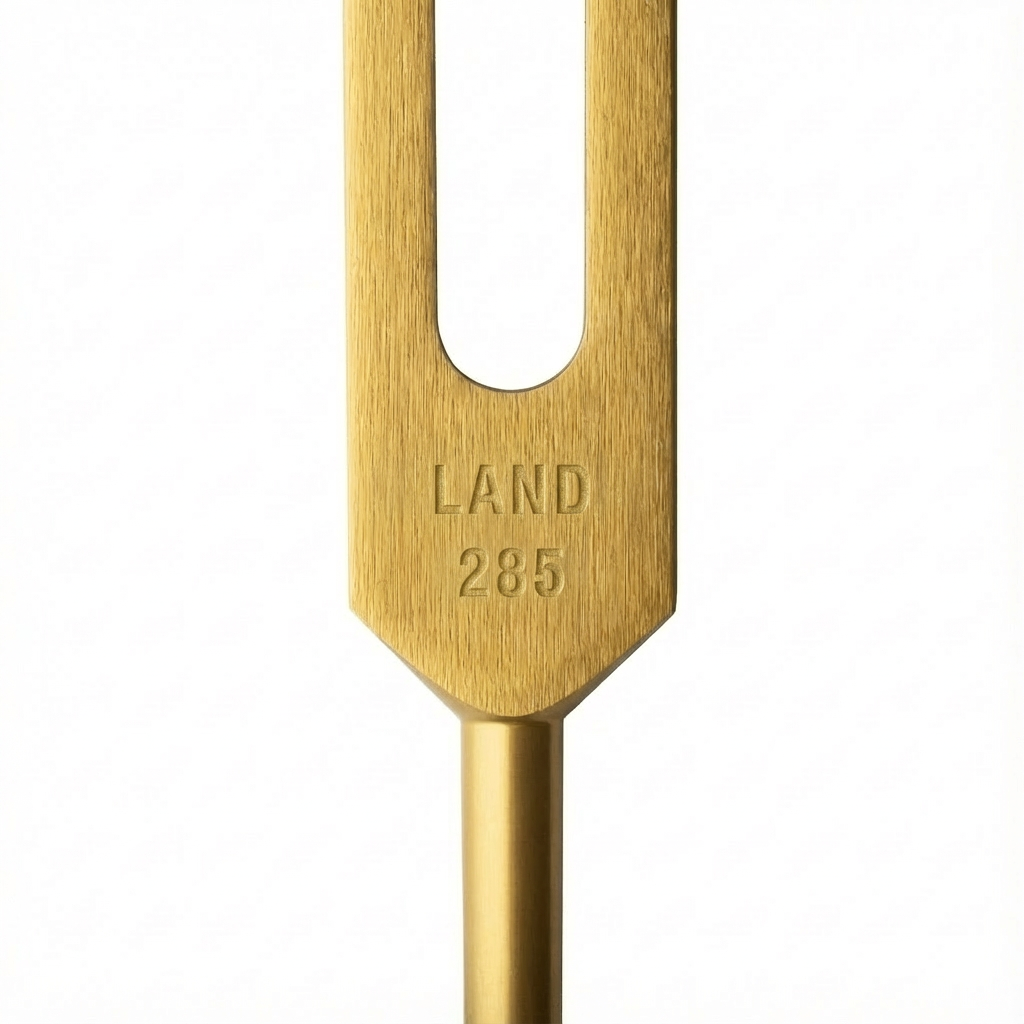 Eine Gabel kann einer fokussierten Absicht dienen (z. B. 174 Hz Beruhigung, 528 Hz Erneuerung, 136,10 Hz innerer Frieden).