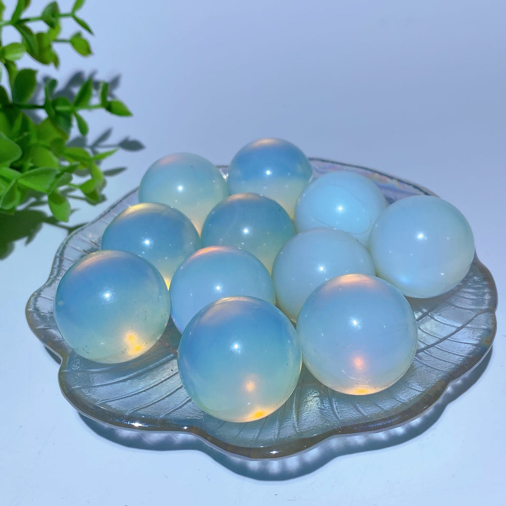 To care for your opalite sphere, gently clean it with a soft, dry cloth after use. Avoid exposure to water and harsh chemicals to preserve its polished surface and energetic qualities for years to come.