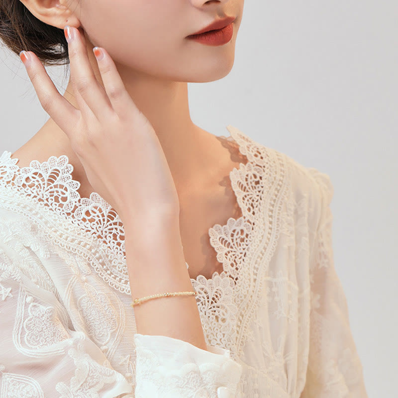 Um die Schönheit und Energie Ihres Armbandes zu erhalten, nehmen Sie es bitte vor dem Schlafengehen oder Waschen ab. Reinigen Sie es vorsichtig mit einem weichen Tuch. Vermeiden Sie den Kontakt der 14-Karat-vergoldeten Teile mit Chemikalien wie Parfüm oder Sonnenschutzmitteln, um Schäden zu vermeiden und das Aussehen zu erhalten.