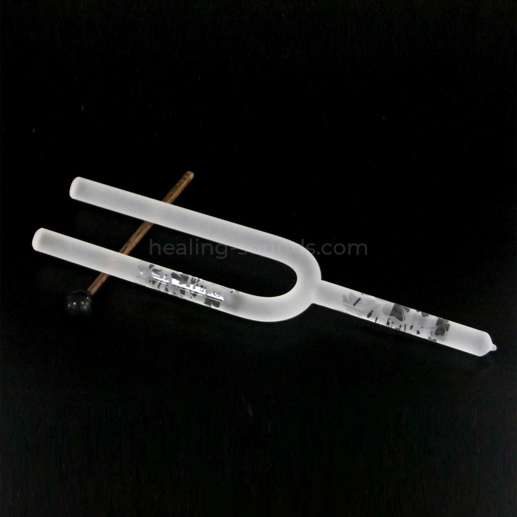 432 Hz Stimmgabel aus mattiertem Quarzkristall mit Mustern