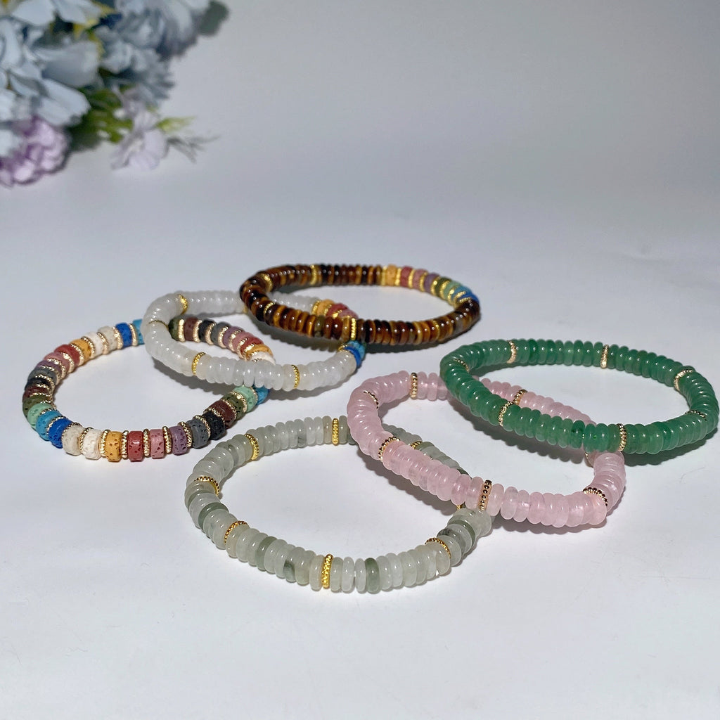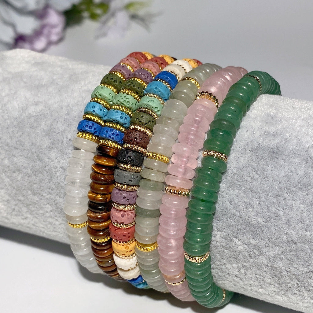 Ja, jedes Armband besteht aus sorgfältig ausgewählten echten Steinen, darunter gelbes Tigerauge, Bergkristall, Jade, Rosenquarz, grüner Aventurin und natürliche Vulkansteine, um Qualität und energetische Vorteile zu gewährleisten.