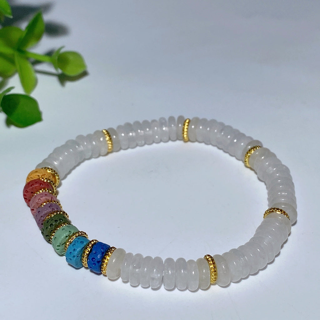 Um seine Schönheit und Energie zu bewahren, reinigen Sie Ihr Armband nach dem Tragen vorsichtig mit einem weichen Tuch und vermeiden Sie den Kontakt mit Wasser oder Chemikalien. Das Abnehmen vor dem Schlafengehen hilft, die Leuchtkraft der Steine zu erhalten.