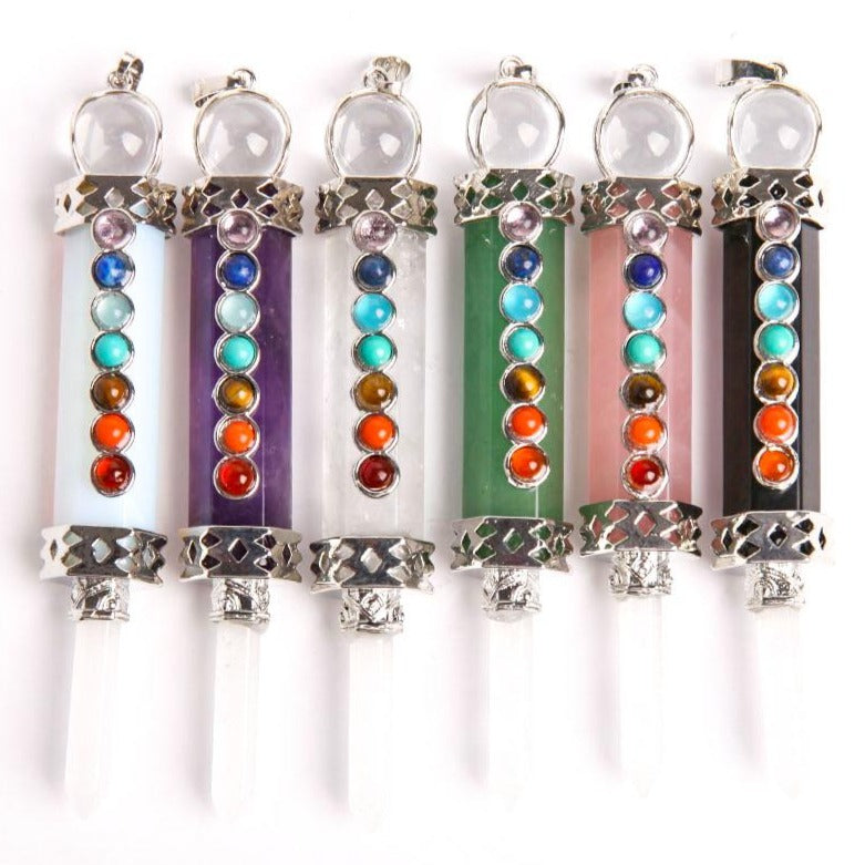 This 7 Chakra pendant is designed to balance your seven main energy centers, harmonizing your body and mind. Each natural crystal represents a chakra, promoting energetic alignment and enhanced spiritual well-being.