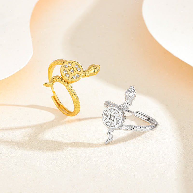 Das Schlangensymbol in diesem Ring steht für Erneuerung und Weisheit und fördert Transformation und einfühlsames Denken. Das zentrale Kupfermünzenmotiv symbolisiert Schutz und Wohlstand und bringt Stabilität und positive Energie in Ihr Leben. Zusammen bilden sie ein kraftvolles Schmuckstück für persönliches Wachstum und Reflexion.