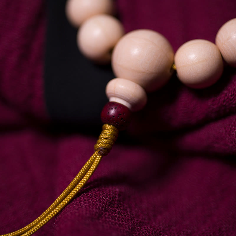 Das Abelia Biflora Wood Mala-Armband trägt starke Segnungen und Schutzenergien, inspiriert vom Om Mani Padme Hum Mantra . Es wird geschätzt, weil es negative Energien abwehrt und spirituelle Sicherheit fördert, was es perfekt für Meditation und Achtsamkeitsübungen macht.