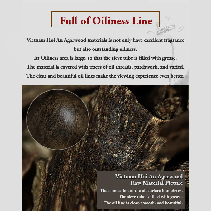 Diese Perlen stammen aus einer der renommiertesten Adlerholzregionen der Welt, aus Hoi An, Vietnam – bekannt für die Produktion außergewöhnlich aromatischer Sorten. Im Gegensatz zu gewöhnlichem Adlerholz besitzt Hoi An-Adlerholz einen unverwechselbar süßen, fruchtigen Duft mit bemerkenswerter Tiefe. Das Material erreicht die begehrte Qualitätsstufe „Neun-Punkte-Sinken“, was auf seinen außergewöhnlichen Harzgehalt und seine Seltenheit hinweist.