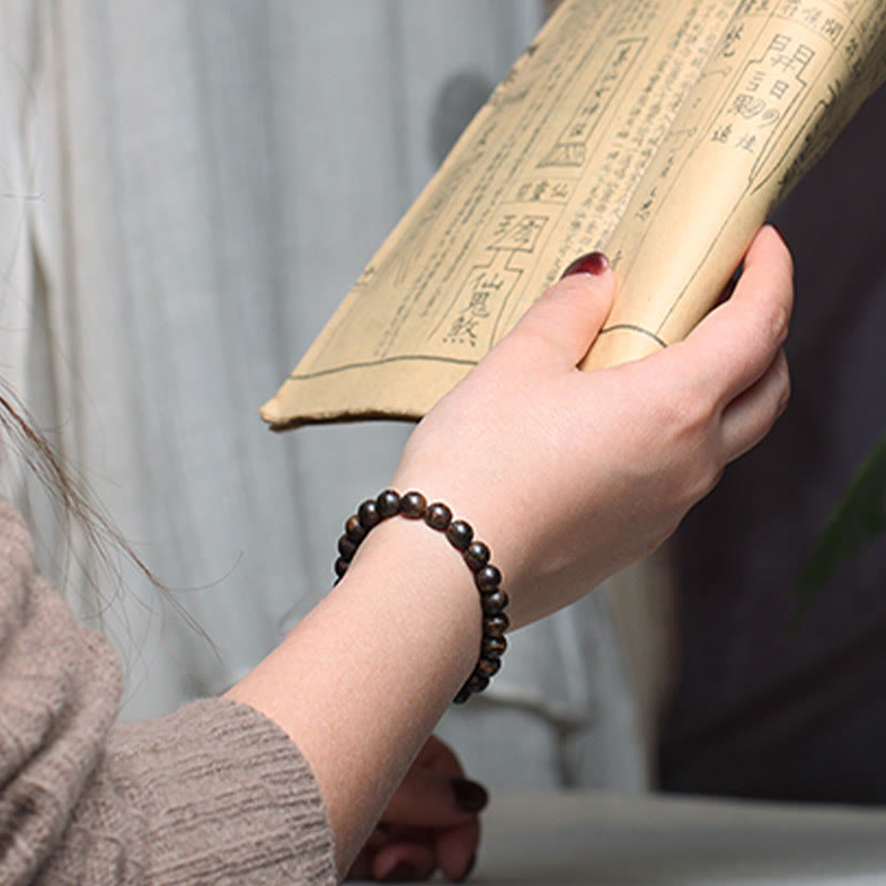Seit Jahrhunderten wird Meditationsschmuck aus Adlerholz für seine Fähigkeit geschätzt, Harmonie im Inneren des Trägers zu erzeugen. Traditionelle östliche Praktizierende glauben, dass diese Perlen helfen: