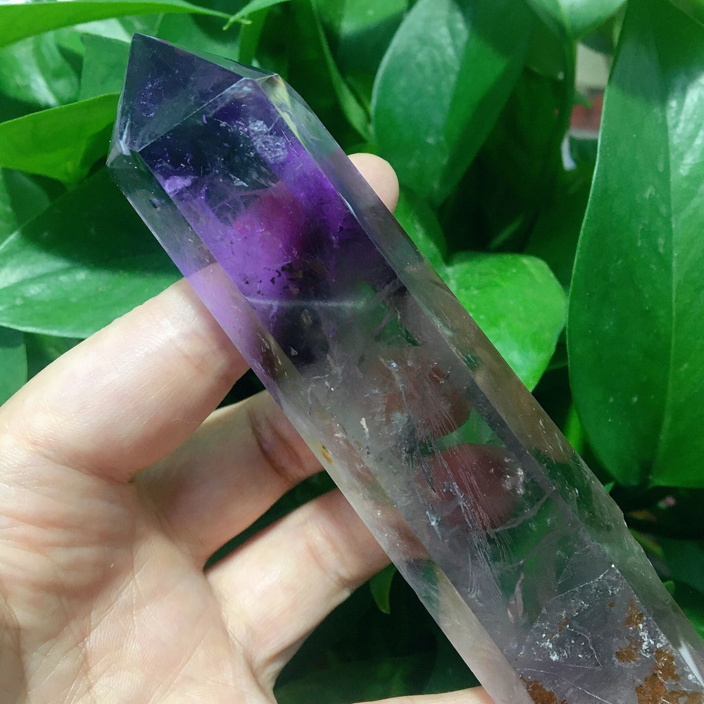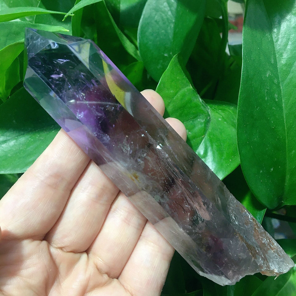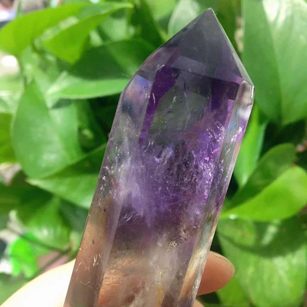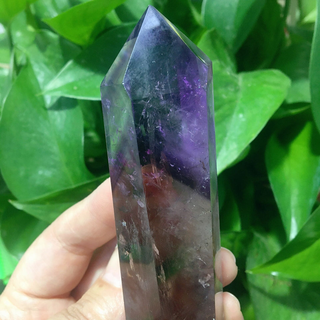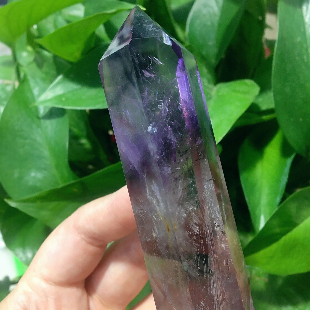 The dark purple amethyst point is known for promoting calmness and spiritual clarity. Its half polished surface amplifies energy flow, making it ideal for meditation and chakra balancing practices.