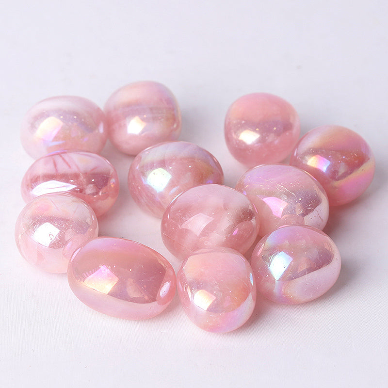 Aura-Rosenquarz- Trommelsteine strahlen liebevolle und heilende Energien aus, die emotionales Gleichgewicht und Mitgefühl fördern. Die Engelsform verstärkt den Schutz und die spirituelle Verbindung und macht sie ideal für Meditation und Energiearbeit.