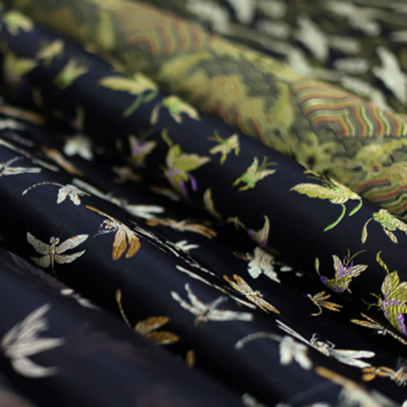 The designs on this handbag symbolize transformation, longevity, resilience, and purity. The dragonflies and cranes symbolize elegance and change, while bamboo leaves and plum blossoms represent strength and renewal, making it a meaningful accessory.