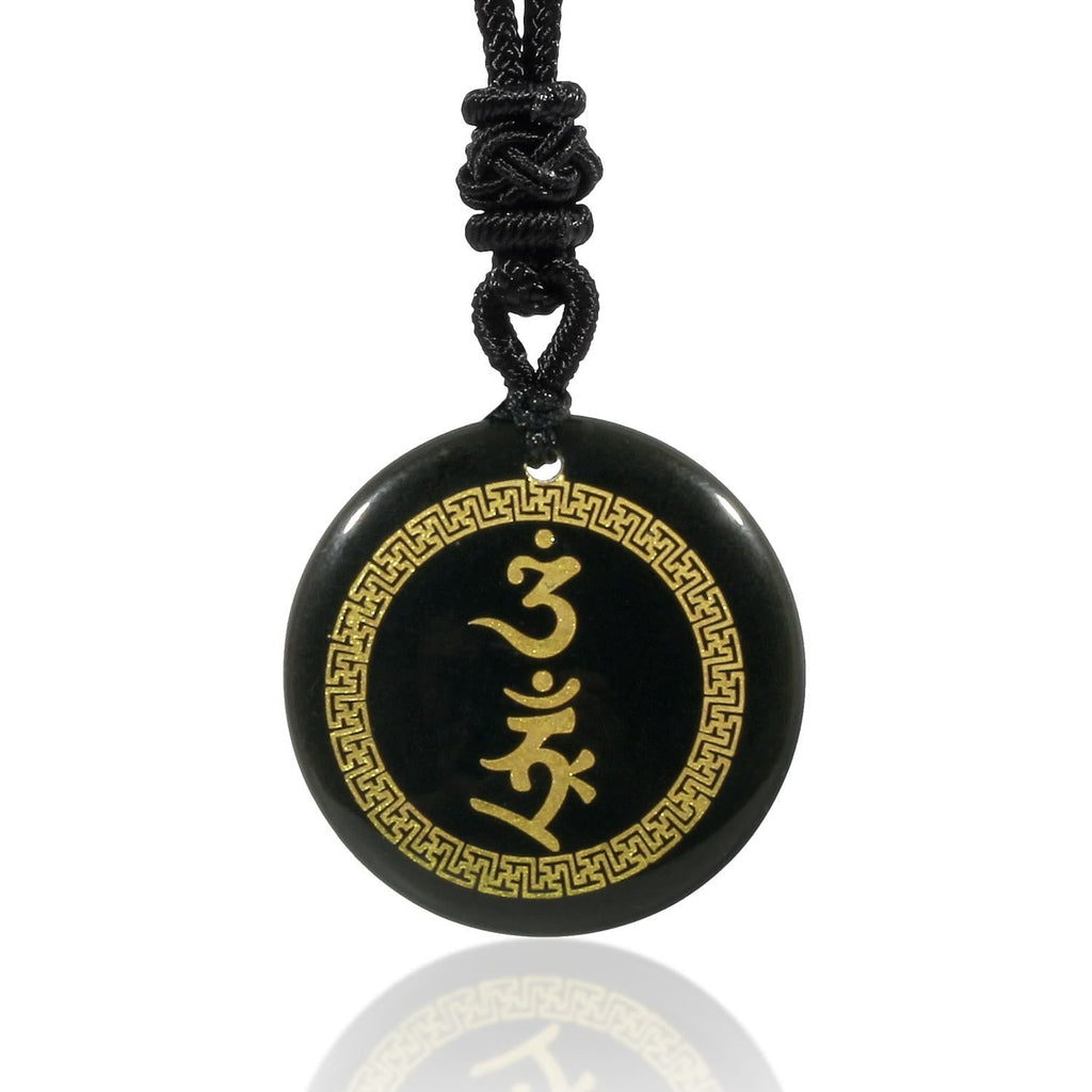 Die Vajra-Symbolik verkörpert unzerstörbaren Schutz und steht für spirituelle Stärke, die nicht gebrochen werden kann. Im Zentrum befindet sich ein kraftvolles Schutzmantra, das traditionell als energetische Rüstung um den Träger herum dient. Das umgebende Hakenkreuzmuster – ein uraltes Symbol buddhistischer Traditionen, das für Glück und Wohlbefinden steht – verstärkt die Fähigkeit des Anhängers, positive Energie anzuziehen.