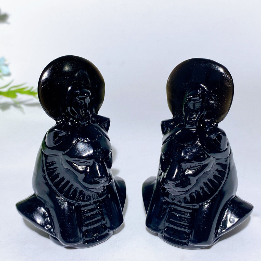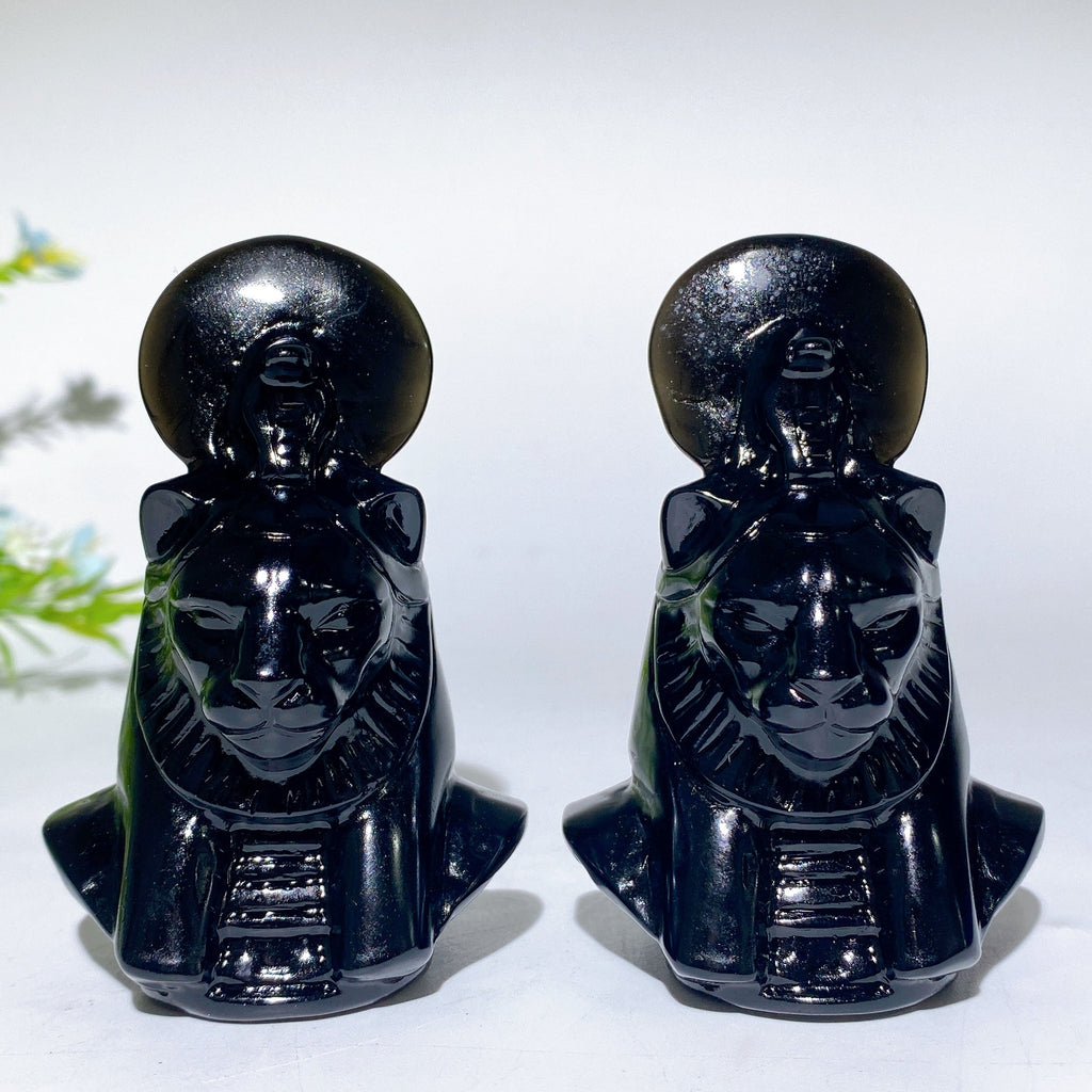 Diese Sachmet-Figur aus schwarzem Obsidian wird für ihre kraftvollen schützenden und heilenden Energien verehrt. Sie nutzt die natürliche Fähigkeit des Steins, negative Energie zu absorbieren, während das Sachmet-Symbol Kraft und Mut stärkt und so Ausgeglichenheit und spirituelles Wachstum fördert.