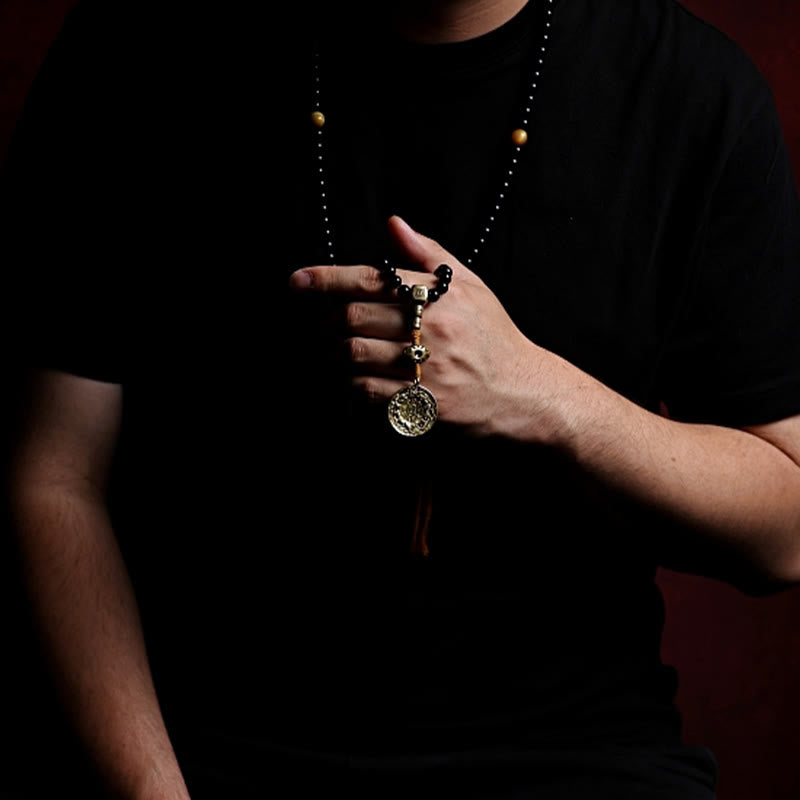 Das elegante Quastendesign greift die Ästhetik traditioneller buddhistischer Gebetsperlen auf, würdigt alte Meditationspraktiken und bietet gleichzeitig einen greifbaren Blickfang für Ihre Praxis. Die Neun-Paläste-Bagua-Option enthält das kraftvolle Feng-Shui-Symbol für Gleichgewicht und Harmonie und verstärkt so den Schutz. Die kupferbesetzte Version nutzt die leitfähigen Eigenschaften dieses Metalls, um den Energiefluss durch die Mala zu verbessern.
