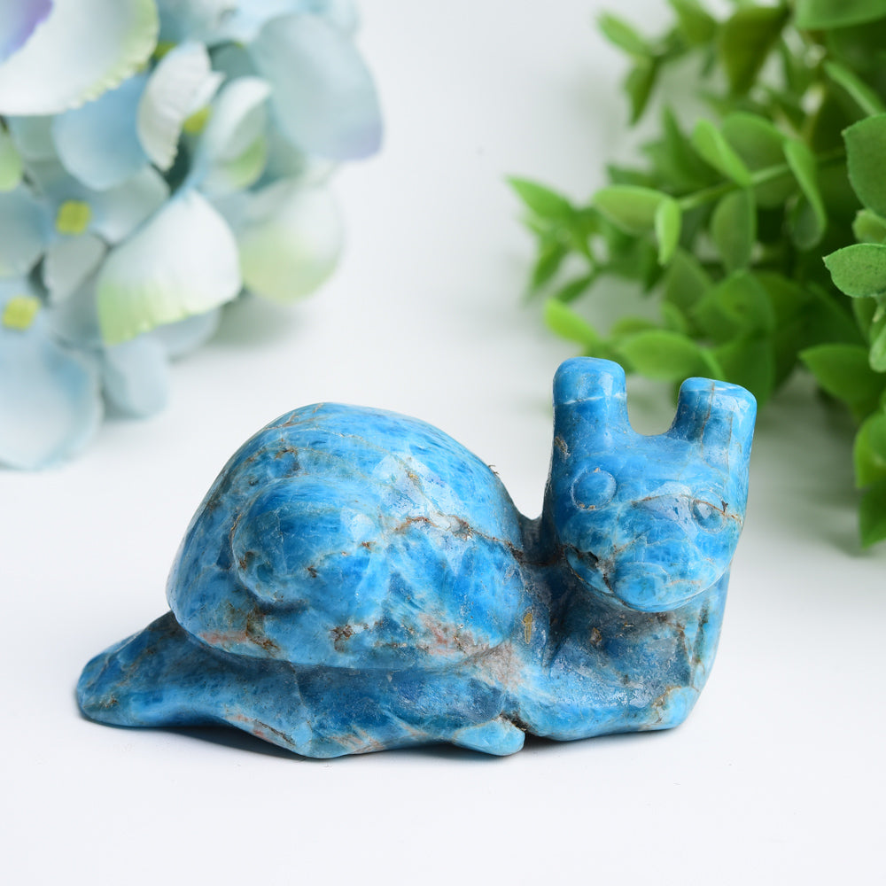 Entdecken Sie die bezaubernde 7,6 cm große Kristallfigur aus blauem Apatit, die Schönheit und heilende Eigenschaften in einem faszinierenden Stück vereint. Diese lebendige Kristallfigur zeigt die atemberaubenden natürlichen Blautöne von echtem Apatitstein und ist sorgfältig in eine anmutige Schneckenform geschnitzt, die Geduld, Ausdauer und stetigen Fortschritt auf der Lebensreise symbolisiert.