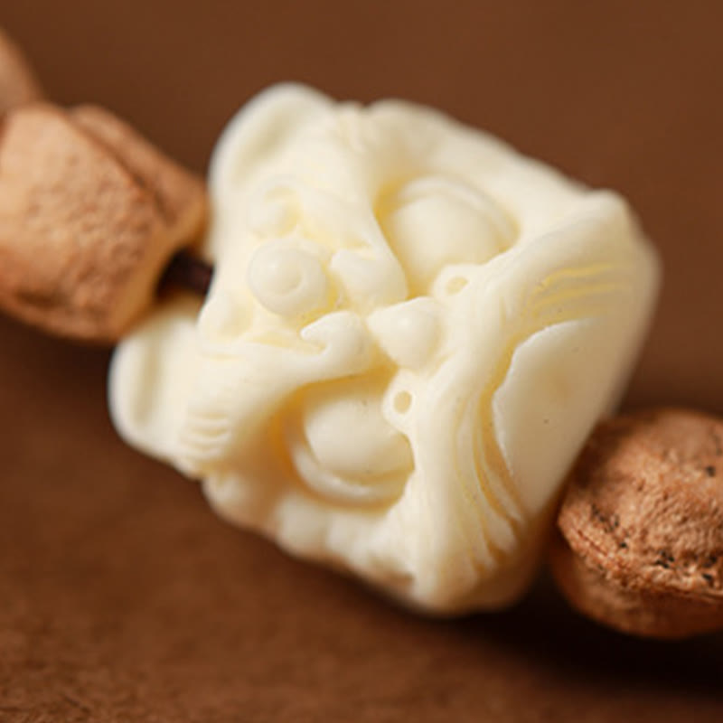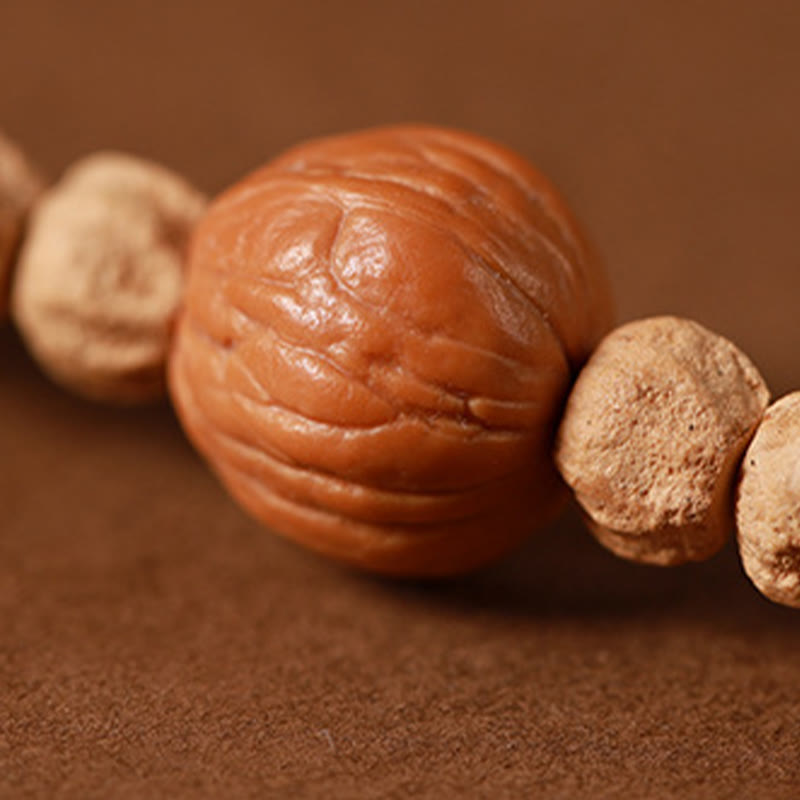 Der Hauptbestandteil dieses Mala-Armbandes ist der Bodhi-Samen – geerntet vom selben Baum, unter dem Buddha die Erleuchtung erlangte. Diese natürlichen Samen messen etwa 6 x 7 mm und weisen markante dunkle Sprenkel auf, die jeder Perle ihre einzigartige Schönheit verleihen. Das Armband enthält leuchtend roten Achat , einen Stein, der dafür bekannt ist, logisches Denken zu fördern, Selbstakzeptanz zu fördern und während der Meditation innere Ruhe zu bewahren.