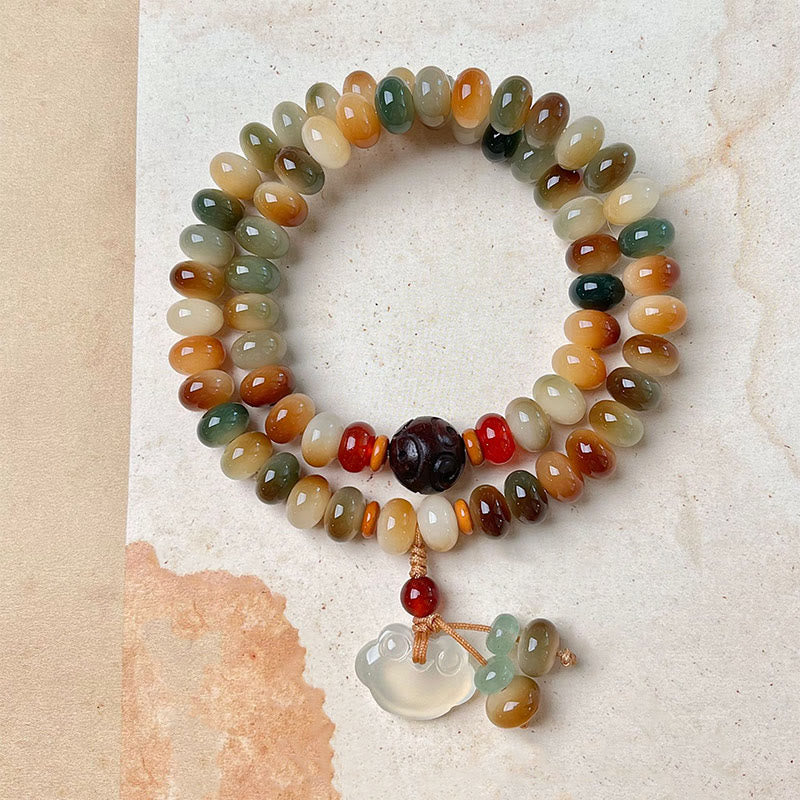 Yes, this bracelet is handcrafted from genuine Bodhi Seed beads combined with Chalcedony. Each piece may vary slightly in color and texture, emphasizing its natural, eco-friendly origins.