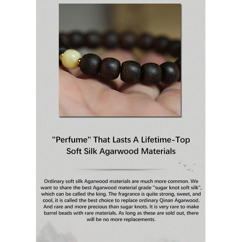 Das Bernsteinarmband aus Brunei-Adlerholz gleicht das Chi während der Meditation aus, beruhigt Geist und Seele, verleiht Kraft und Frieden, lindert Ängste und dient dank seiner seltenen Eigenschaften aus Adlerholz und Bernstein als Talisman zur Abwehr böser Geister.