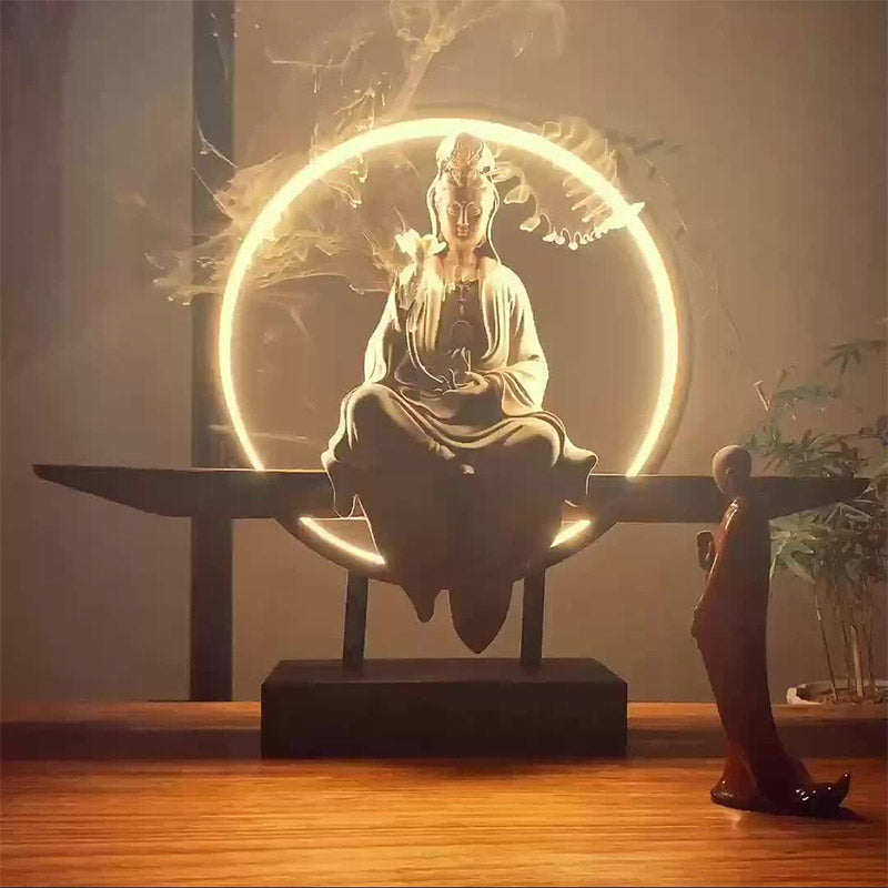 - Includes Wood Pedestal, Incense Burner Decoration, Lotus, Bracelet, Small Incense Holder