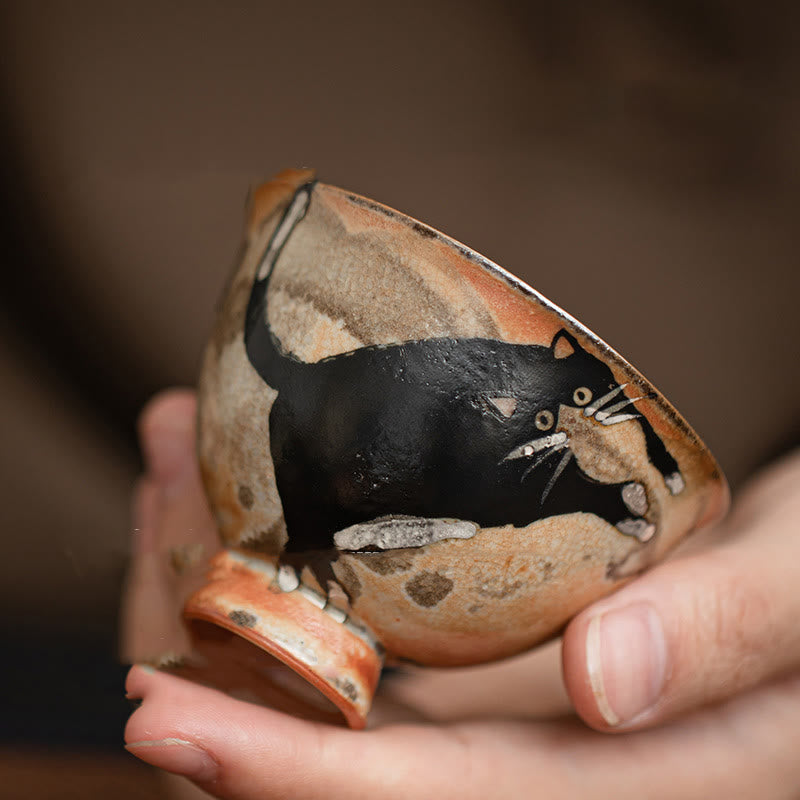 Diese Keramik-Katzen-Teetasse wird von erfahrenen Kunsthandwerkern handgefertigt, wodurch jedes Stück ein Unikat mit natürlichen Variationen ist. Ihre geringe Größe und das charmante Katzendesign schaffen eine beruhigende Atmosphäre, die jedes Zen-Dekor oder jede Teezeremonie perfekt aufwertet.