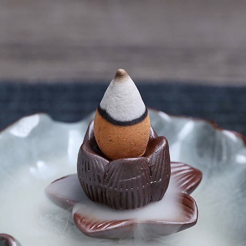 The ceramic lotus backflow incense burner creates a calming ambiance that fosters relaxation, meditation, and introspection. The mesmerizing backflow smoke symbolizes the cleansing of negative energy, supporting your spiritual balance and mindfulness practice.
