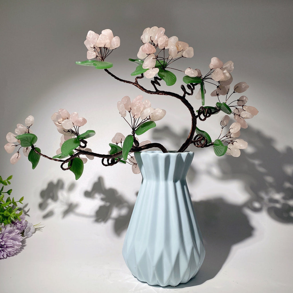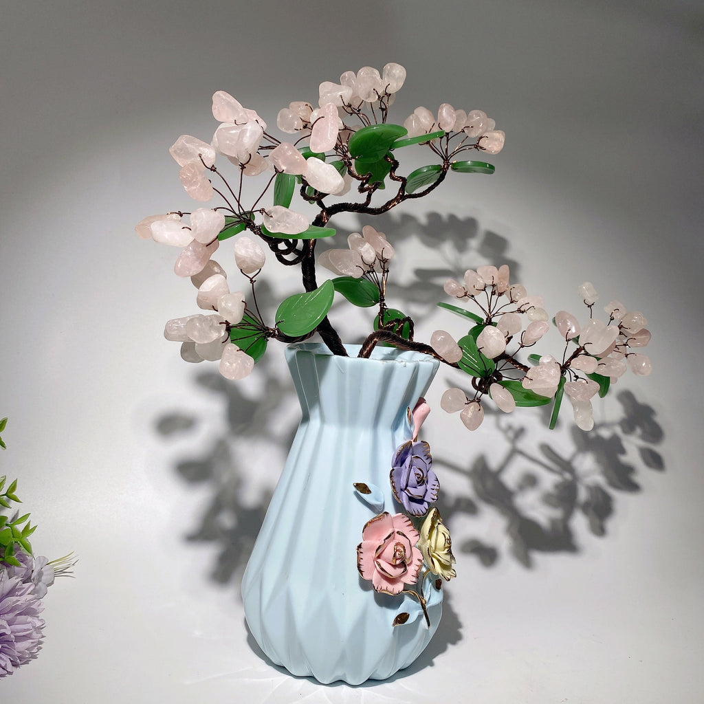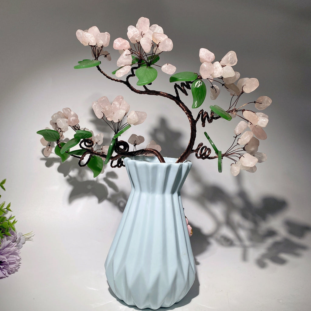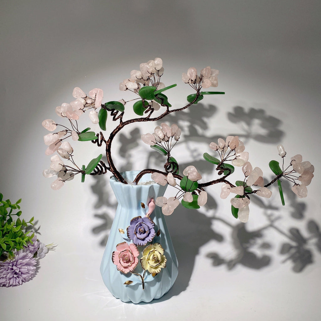 The rose quartz flower symbolizes love, compassion, and emotional healing. Placing this vase in your space can enhance feelings of calmness and promote a loving, peaceful zen ambiance throughout your home.