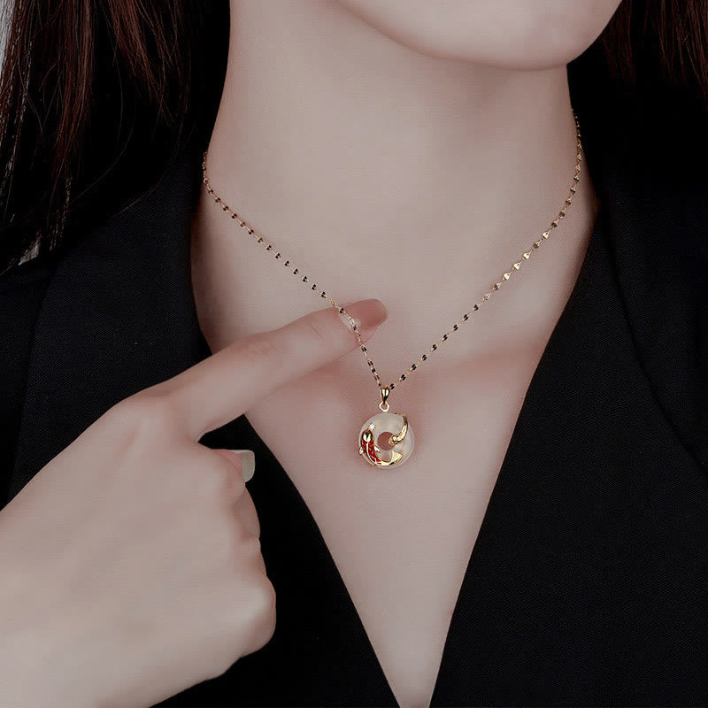 Der Chalcedon in dieser Koi-Karpfen-Halskette wird für seine sanften und zugleich kraftvollen Eigenschaften geschätzt. Dieser pflegende Stein fördert: