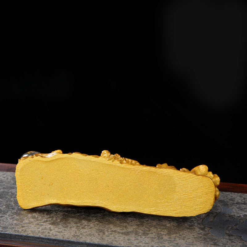 Über seine symbolische Bedeutung hinaus dient dieser Drache auch wunderbar als traditionelles chinesisches Teetier. Teekenner gießen bei Teezeremonien übrig gebliebenen Tee über diese Begleiter, wodurch sie mit der Zeit eine einzigartige Patina entwickeln. Auch außerhalb der Teezeremonie ist die Figur ein elegantes Dekorationsstück und verleiht jedem Raum orientalische Mystik.