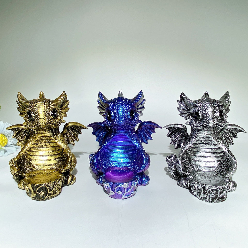 Each dragon stand has a unique finish in various colors: Pink, Blue, Golden, Silver, and Blue Purple. Note that colors may vary slightly due to screen differences but all maintain a glossy, textured look.