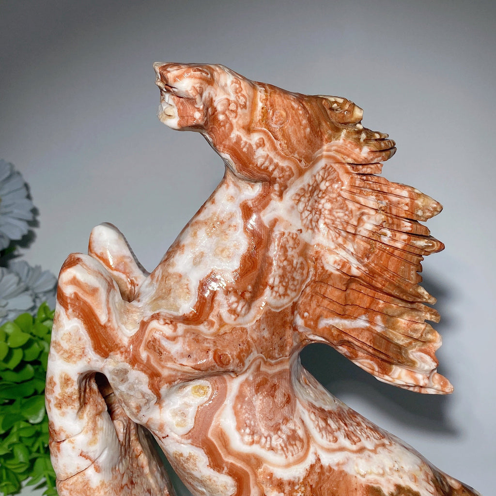 This chocolate calcite horse carving symbolizes strength and dynamic energy. It is believed to enhance healing vibrations and inspire movement, courage, and perseverance in your spiritual practice.