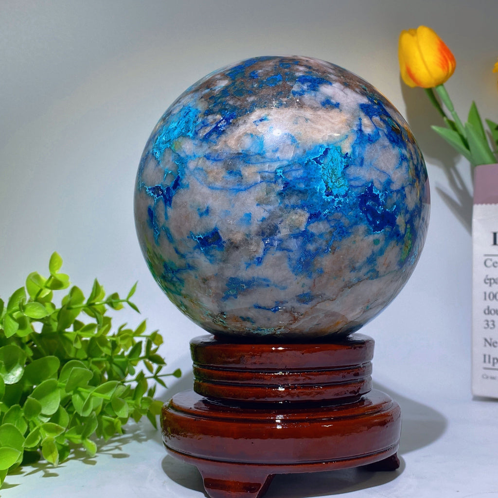 Chrysocolla's vibrant energy helps bring balance to both your environment and your inner emotional state. As you work with this magnificent sphere, you may notice improved communication abilities, enhanced emotional resilience, and a greater sense of tranquility in your daily life.