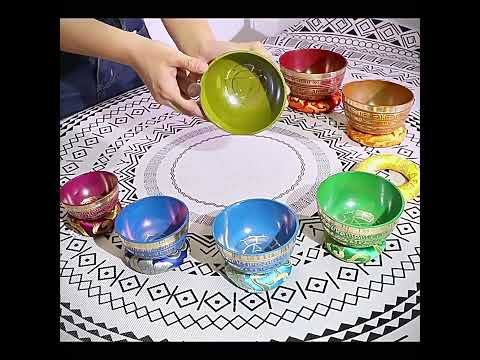 • Das Set beinhaltet 7 Klangschalen, jede davon harmonisiert mit den 7 Chakren