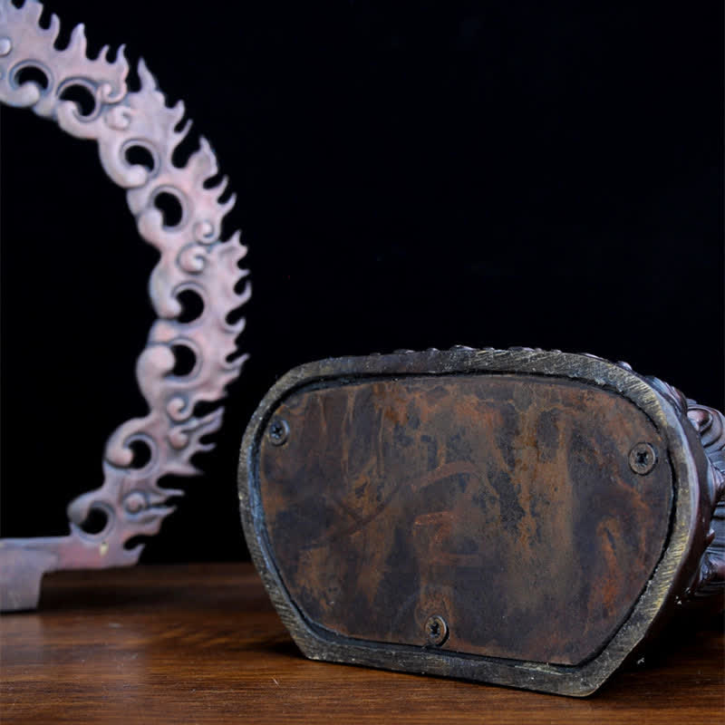 Um ihre Schönheit und ihre energetischen Eigenschaften zu erhalten, reinigen Sie die Statue vorsichtig mit einem weichen, trockenen Tuch und vermeiden Sie den Kontakt mit Feuchtigkeit oder aggressiven Chemikalien. Diese sorgfältige Pflege bewahrt sowohl die Kupferoberfläche als auch die spirituelle Energie.