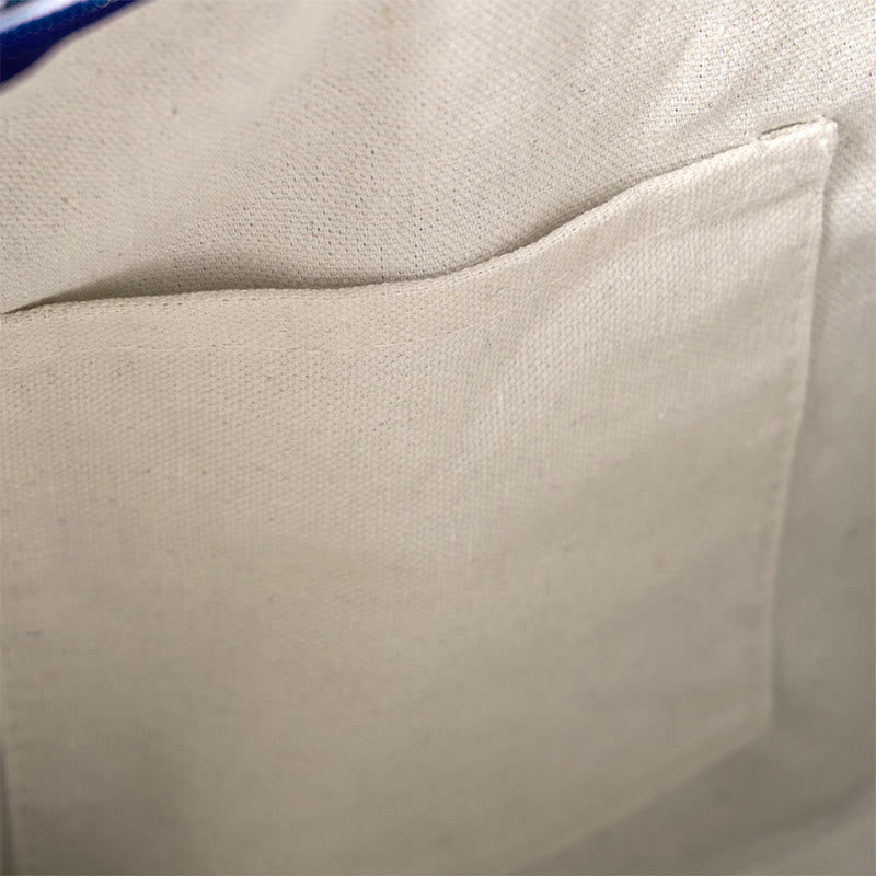 Die Tasche ist aus strapazierfähigem Baumwollstoff gefertigt und garantiert so lange Haltbarkeit und Tragekomfort. Das natürliche Material macht sie außerdem umweltfreundlich und ideal für den Alltag.