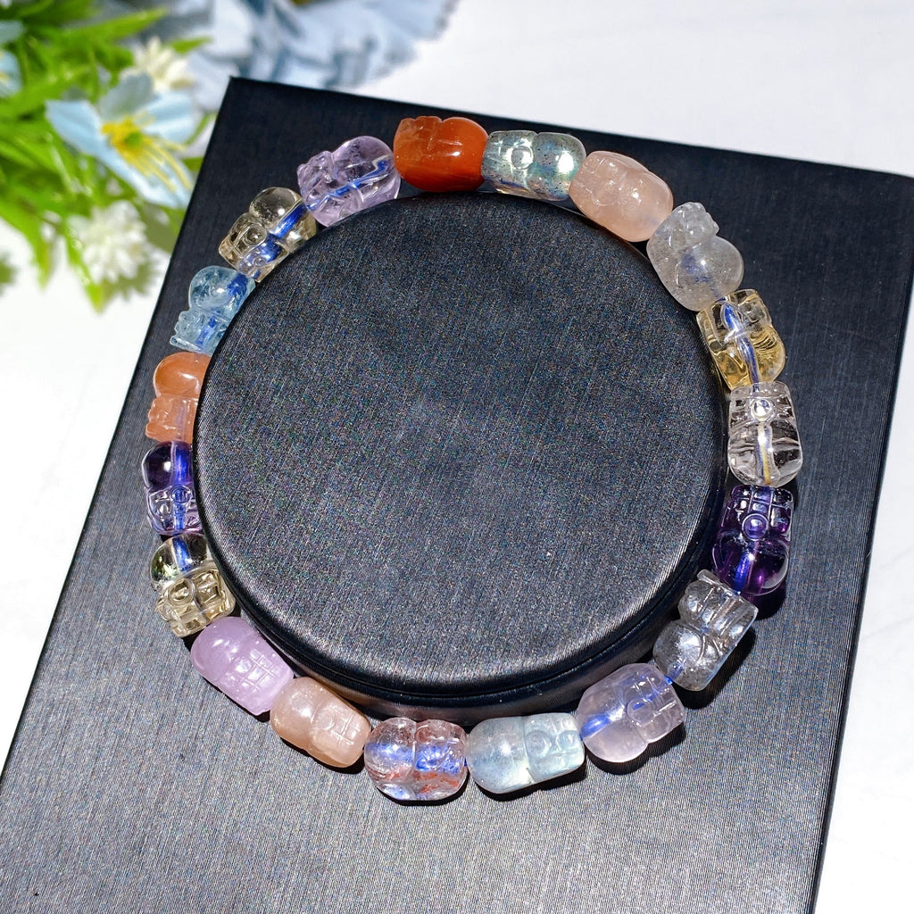 Erleben Sie die transformative Energie unseres Kristallheilungsarmbands mit einer atemberaubenden Auswahl an gemischten Steinen von 4–14 mm Größe. Dieses exquisite spirituelle Schmuckstück vereint ästhetische Schönheit mit energetischen Eigenschaften, um Ihre Chakren auszugleichen und Ihr allgemeines Wohlbefinden zu fördern. Jedes Armband dient als persönlicher Talisman und begleitet Sie auf Ihrer spirituellen Reise.
