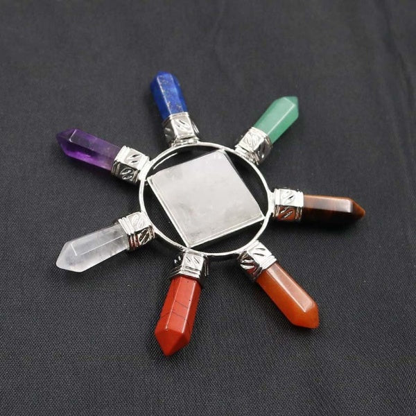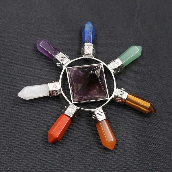 7 Punkte: Amethyst, Lapislazuli, grüner Aventurin, Tigerauge, Karneol, roter Türkis, Bergkristall