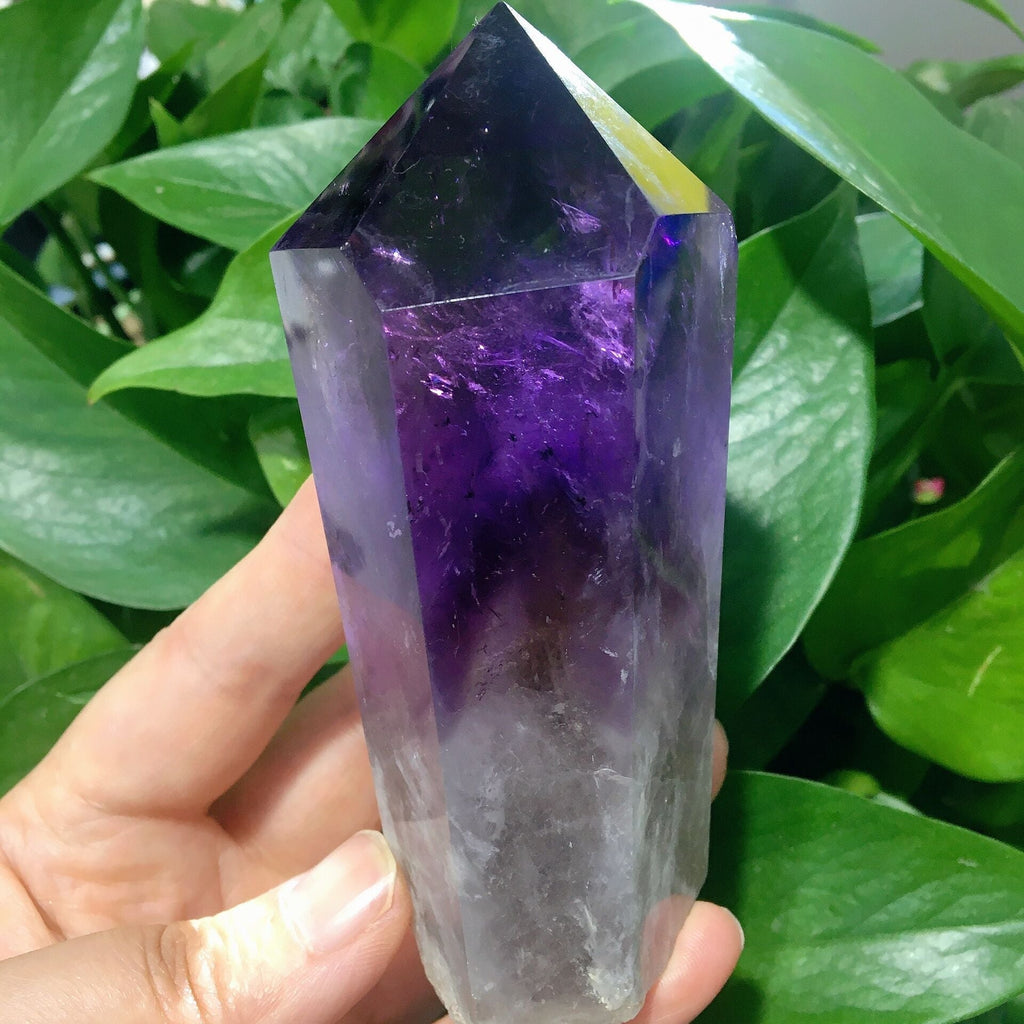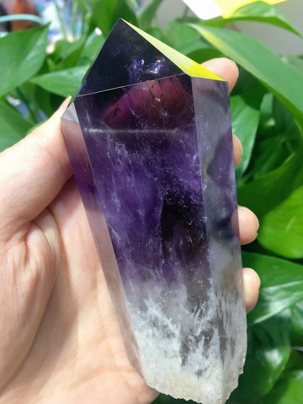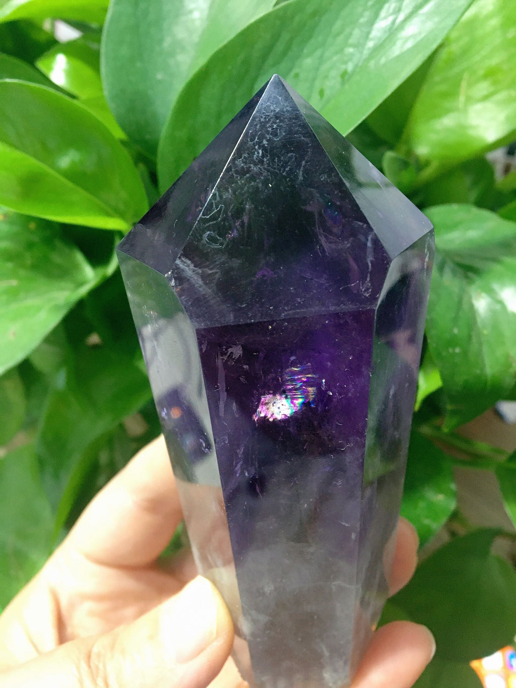 This dark purple amethyst point is known for its powerful healing properties, promoting calmness, balance, and spiritual growth. It's believed to aid in meditation and chakra alignment, especially supporting the crown and third eye chakras.