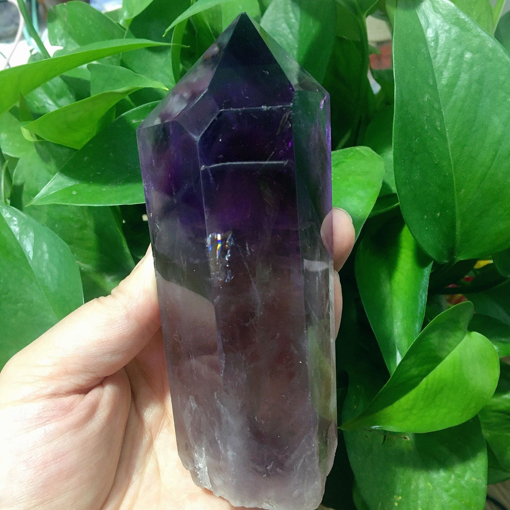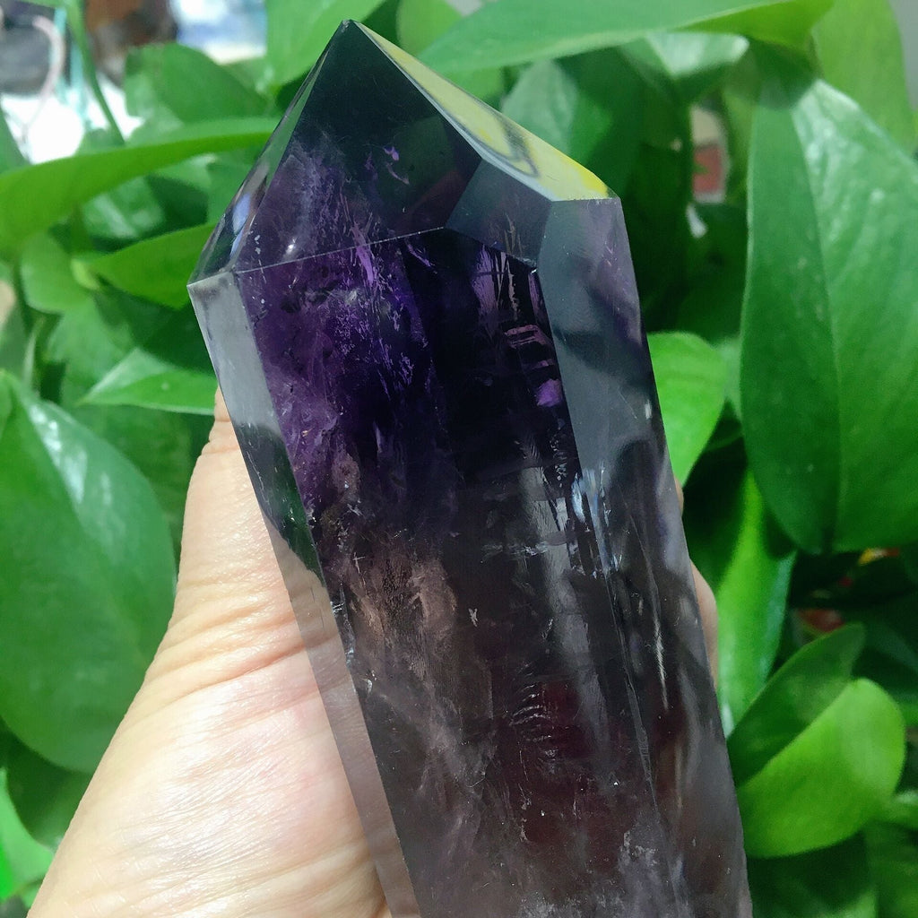 To keep your amethyst point vibrant and energetically clear, gently wipe it with a soft cloth after use and avoid exposure to water or excessive sunlight.