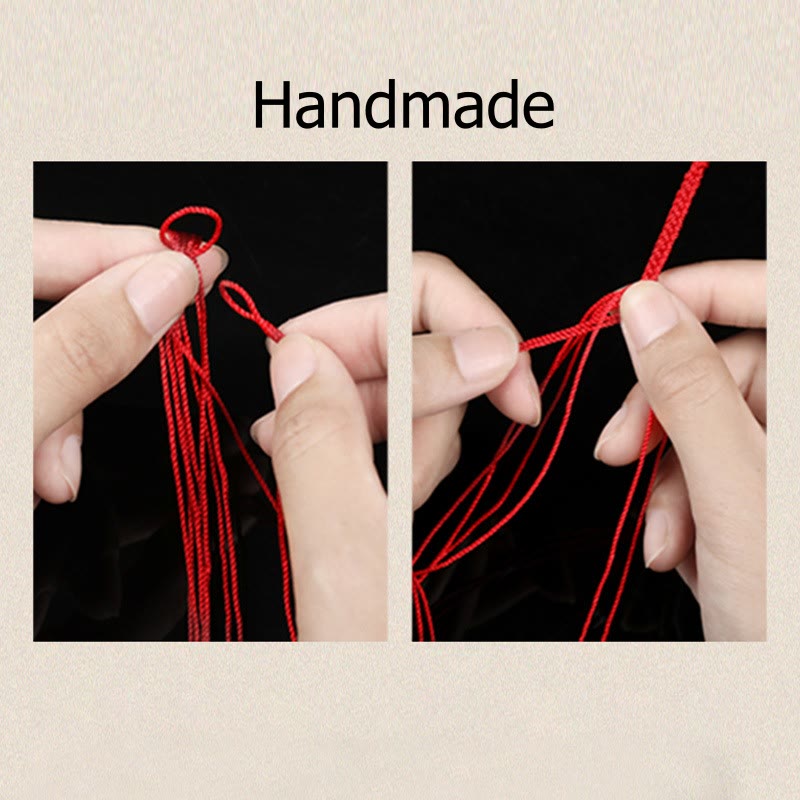 Die Konstruktion des Armbands besteht aus traditionellen roten Kordelelementen, die in östlichen spirituellen Praktiken seit Jahrhunderten als Symbole des Schutzes und der göttlichen Verbindung verwendet werden. Diese durchdachte Materialkombination schafft ein Schmuckstück, das sowohl ästhetisch schön als auch energetisch kraftvoll ist.