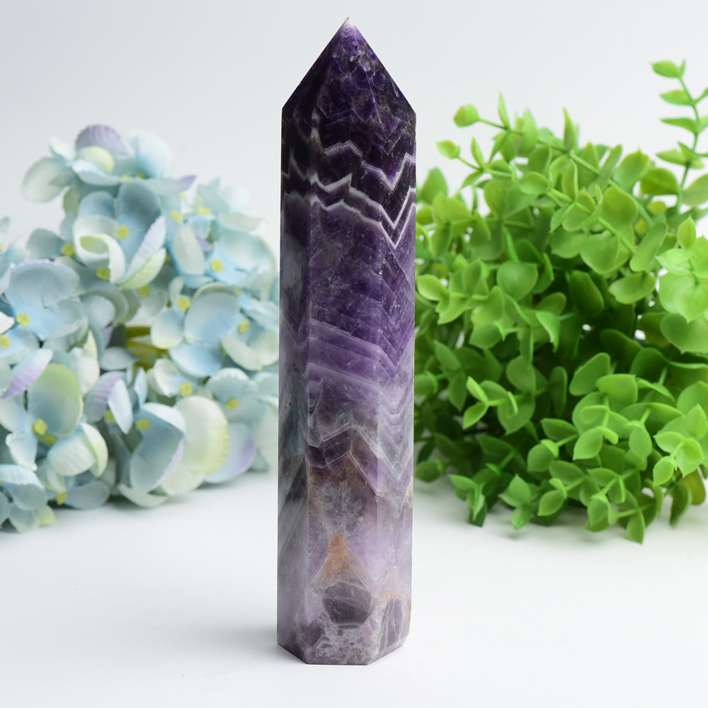 Jeder turmförmige Kristall wird sorgfältig aufgrund seiner leuchtenden Purpurtöne ausgewählt, die von zartem Lavendel bis zu sattem Königsviolett reichen. Die polierte sechseckige Struktur fängt das Licht wunderschön ein und erzeugt einen fast ätherischen Glanz, während die natürliche Energie des Steins maximiert wird.