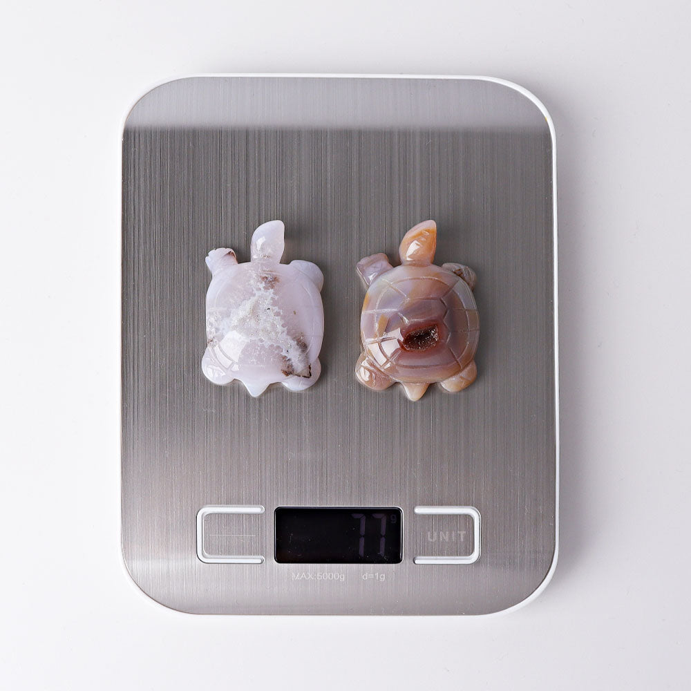 This druzy agate turtle carving is prized for its symbolism of prosperity and protection. The druzy surface promotes healing energy, while the turtle represents longevity and grounded stability in Feng Shui practices.