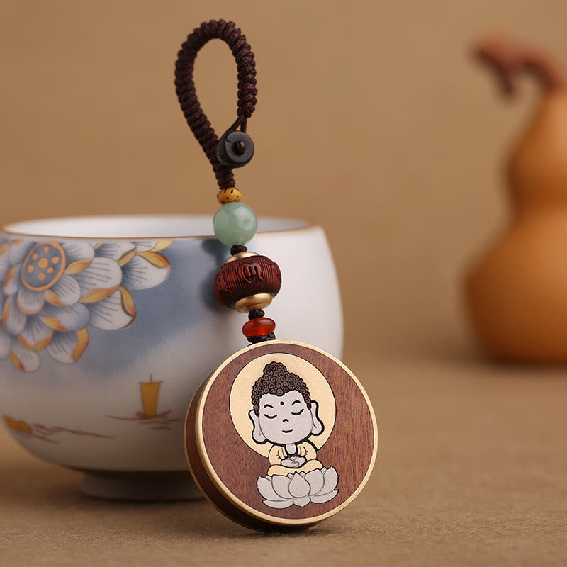 This key chain combines Ebony wood for grounding and protection, Rosewood for compassion and calm, along with the powerful Buddha and Avalokitesvara symbols promoting balance, peace, and spiritual strength.