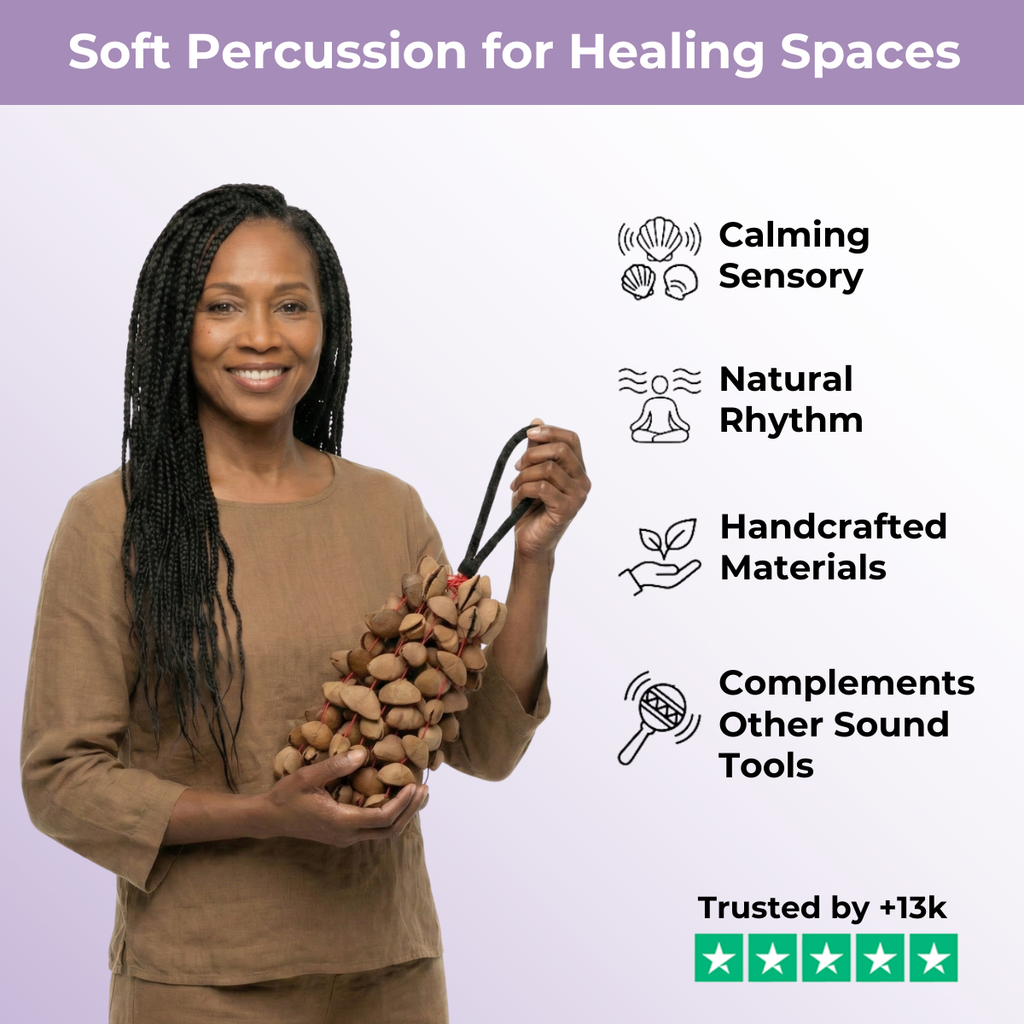 Unsere afrikanischen Muschelschüttler erzeugen Klänge, die in traditionellen Praktiken mit verschiedenen Chakra-Frequenzen assoziiert werden und so das Streben nach energetischem Gleichgewicht unterstützen. Die sanften rhythmischen Töne tragen zu einer beruhigenden Atmosphäre bei und ergänzen Yoga, Meditation oder Klangimmersionssitzungen. Diese Instrumente dienen als Werkzeuge zur Vertiefung persönlicher Erkundung und Reflexion.