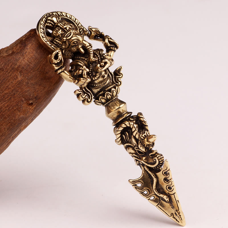 Die Ganesh Dorje Vajra Halskette vereint die Segnungen Ganeshs, des Beseitigers von Hindernissen und Gottes des Wohlstands, mit dem Vajra, der Unzerstörbarkeit und spirituelle Kraft symbolisiert. Das Tragen dieses Anhängers trägt dazu bei, Fülle, Schutz und göttliche Führung anzuziehen und so ein ausgeglichenes, erfolgreiches Leben zu unterstützen.