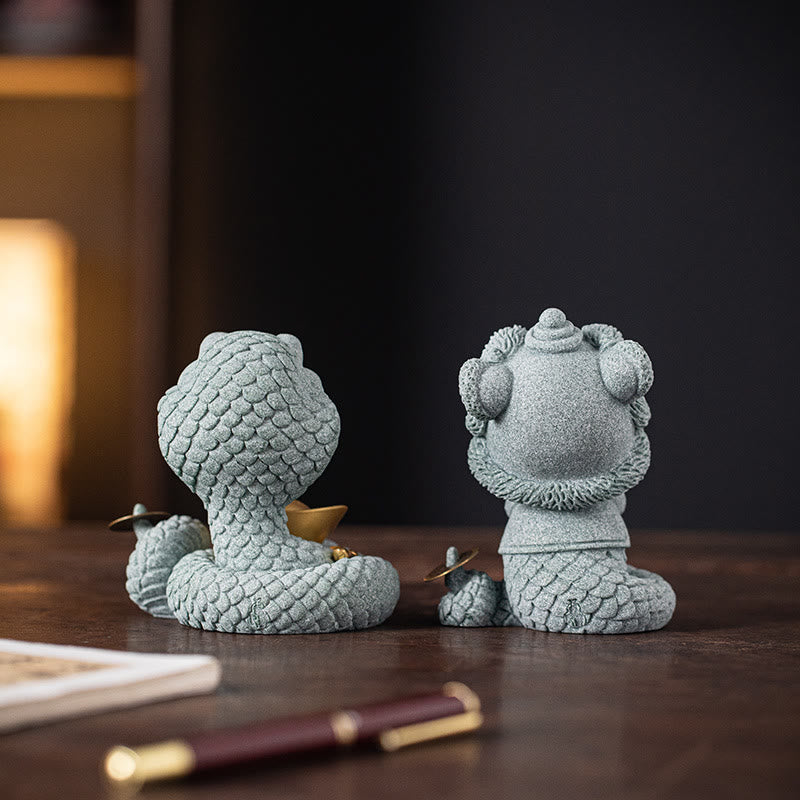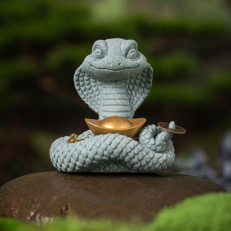 Unsere Kollektion umfasst auch gepaarte Sets mit der Goldbarrenschlange und der Grußschlange, die komplementäre Energien liefern, um die Harmonie und Ausgeglichenheit Ihres Zuhauses zu verbessern. Sie können zusammen oder in getrennten Bereichen ausgestellt werden, um ihren positiven Einfluss im gesamten Raum zu verteilen.