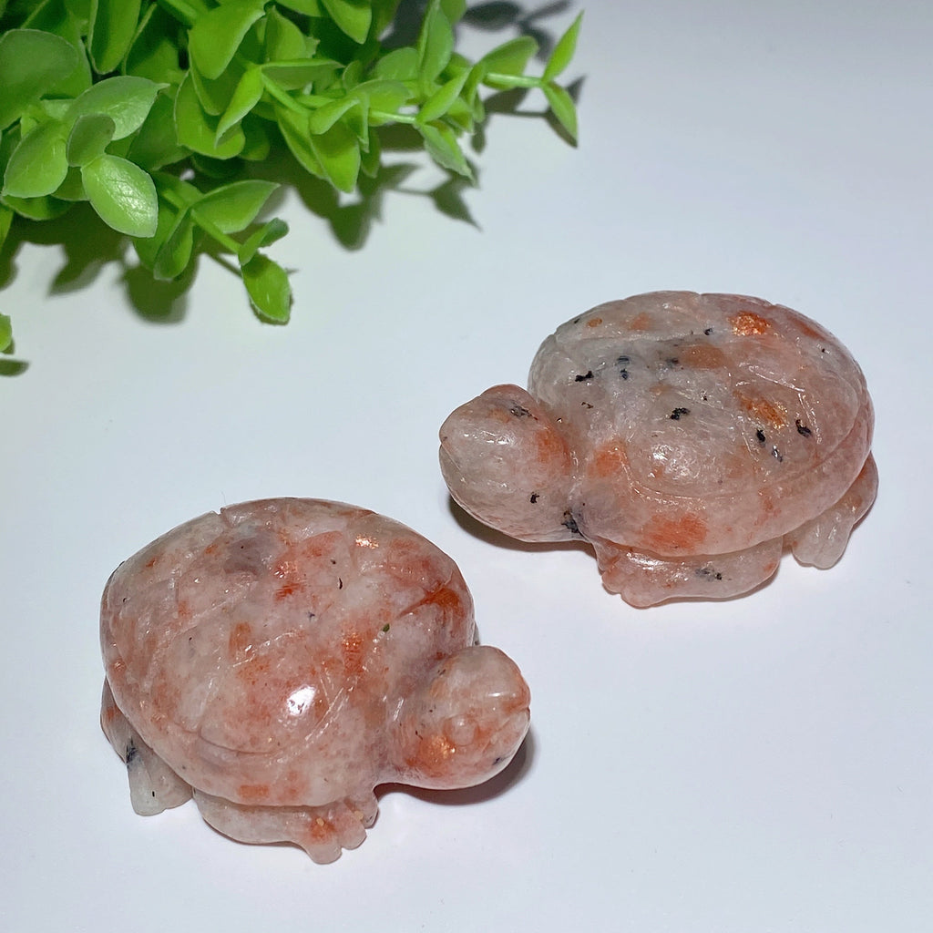 The Golden Strawberry Quartz turtle is believed to promote prosperity and healing energy. Its gentle pink hues with reddish-orange inclusions support emotional balance and attract positive vibrations, making it a meaningful addition to your spiritual collection.